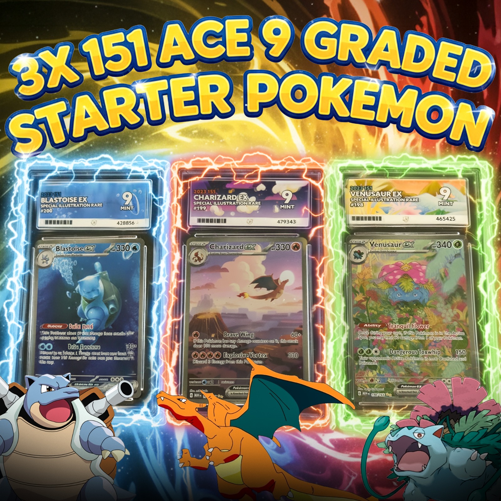 3 x ACE 9 POKEMON 151 FULL ARTS!
