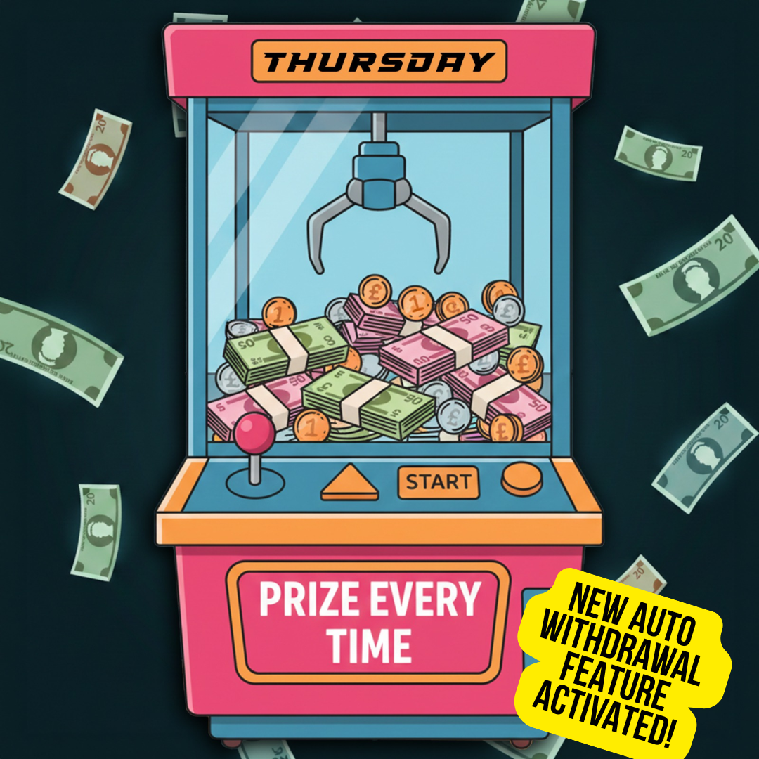 You’ll be able to withdraw your cash wins yourself directly through the website — you don’t even need to contact us, just hit withdraw and boom, it’s in your bank!